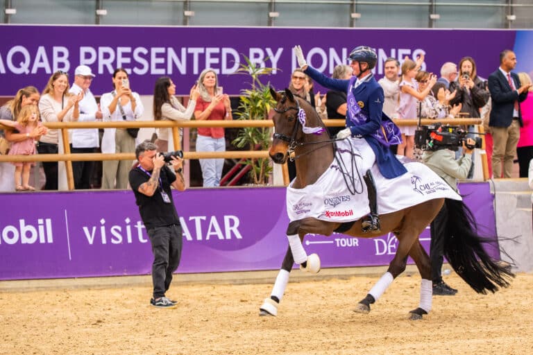 Bronze went to the reigning individual World Champion, Great Britain’s Charlotte Fry and the stallion Glamourdale who posted 88.971% while the Netherlands’ Dinja van Liere and her stallion Hermes just missed a place on the podium when scoring 88.432% for fourth place.