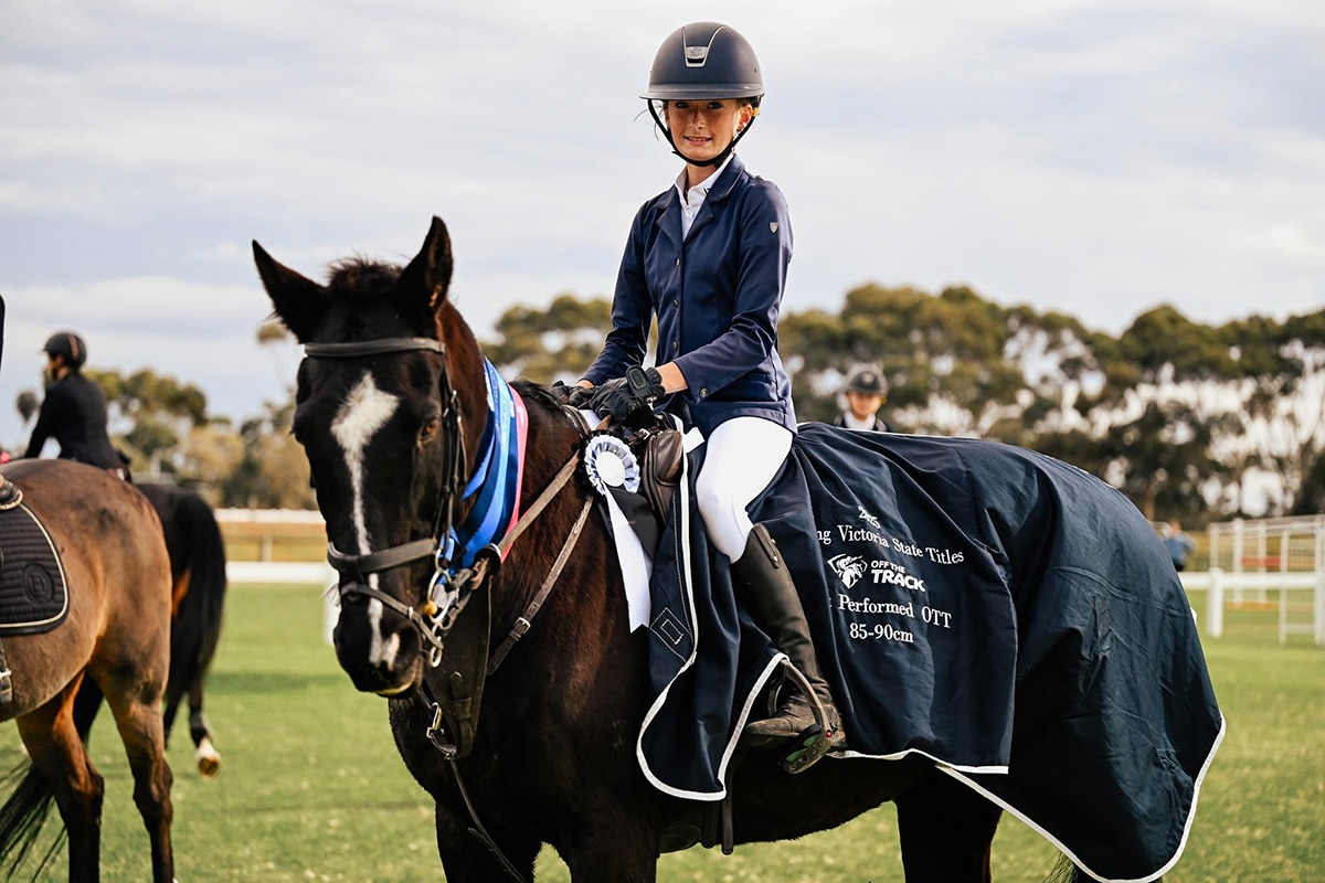 Harry was the best performed OTT in the 85-90cm class at the 2025 Victorian State Jumping Championships. Image by Click Capture.