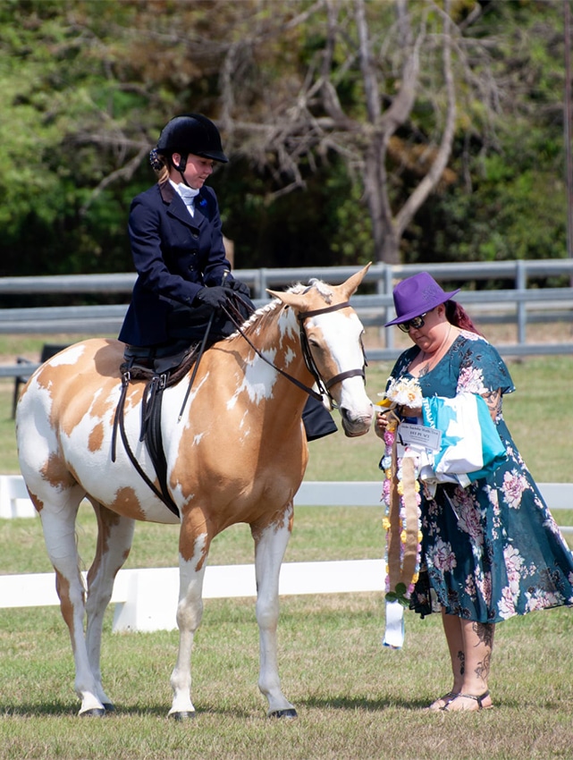 The passion quickly grew, and not long after, Candace made her competitive debut in the ASSC side-saddle feature. “Want to feel like a lady? Then ride side-saddle!” Candace often says. Candance has been a strong side-saddle advocate, introducing the elegance of side-saddle to many other ladies.