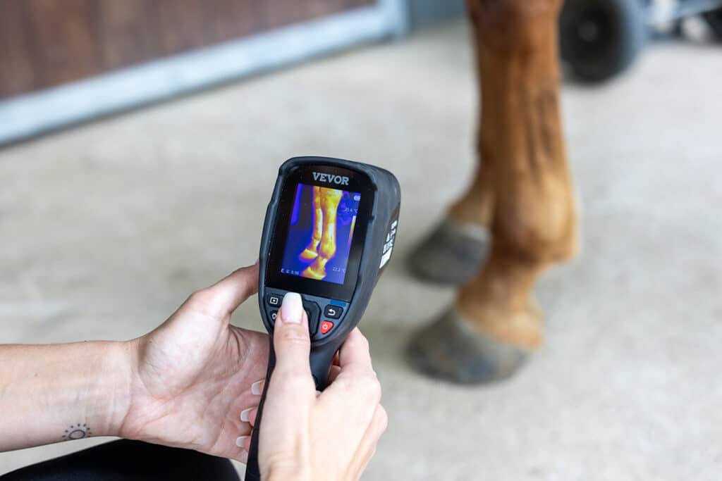 Horses wearing fleece bandage wraps experienced the greatest temperature rise, averaging around 16°C (29°F) higher under the wrap, whereas an uncovered leg in the same exercise saw only about a 3°C (6°F) increase. Tendon boots (including neoprene-lined types) caused roughly 12 – 14°C (21.6-25.2°F) increases in skin temperature (Solheim et al., 2017).