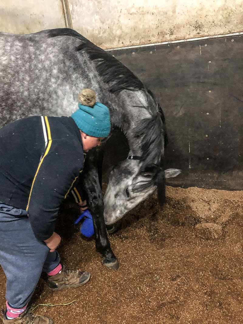Over-stretching or extending the range of joint movement can be detrimental if the forces applied outweigh the strength of newly laid down tissue and cause further tearing. Start off slow and gradually increase the intensity as the horse improves and can tolerate the advances. Work with a qualified therapist or veterinarian initially, so an appropriate exercise regime can be formulated and a timetable can be followed. Exercises do not need to be done every day as this can lead to muscle fatigue, and often 3-4 times a week is more beneficial than 6-7 times a week.