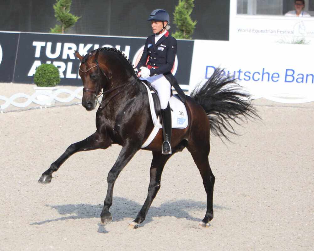 “Make certain you get the horse very adjustable and not afraid to move its legs around. Don’t be afraid about your horse going disunited; if your horse finds flying changes hard and does go disunited when you’re collecting, if you can get the hind leg to change then you just need to get the front leg to change. You just need to get them prepared to use their legs and change them about and make a mistake and go disunited… you know all those things eventually will come into line to make a true flying change.”
