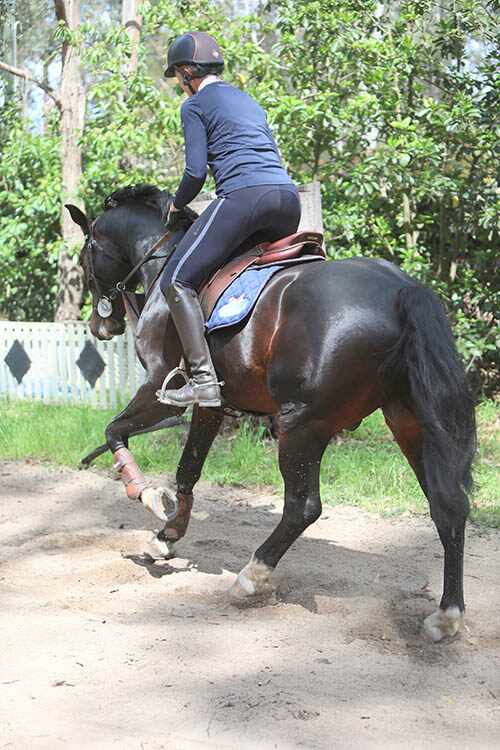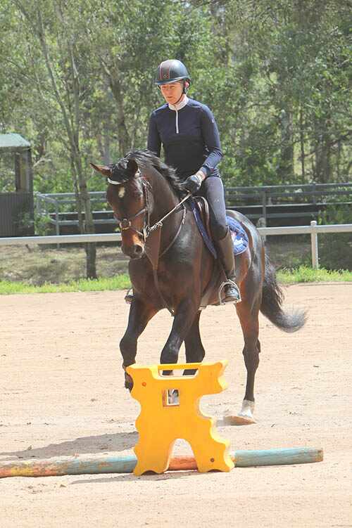 A. Poles are now simply a part of daily life under saddle. B. Cantering over a pole… focused and balanced! © Roger Fitzhardinge.