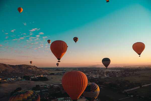 a) Sunrise hot air balloons are an amazing sight. b) Ride Egypt takes guests through the stunning surrounds of the Sahara Desert. Image by Christiane Slawik.
